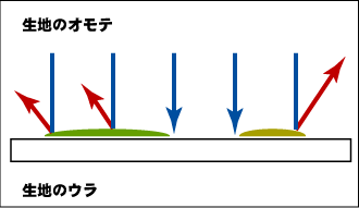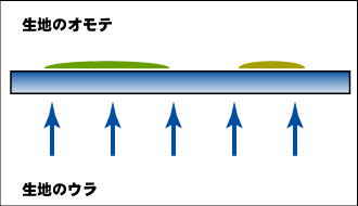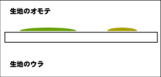 | 生地のオモテ側に、ダックで染めた柄が乗っています。ただし、この上(オモテ側)から染料を乗せると‥‥ |